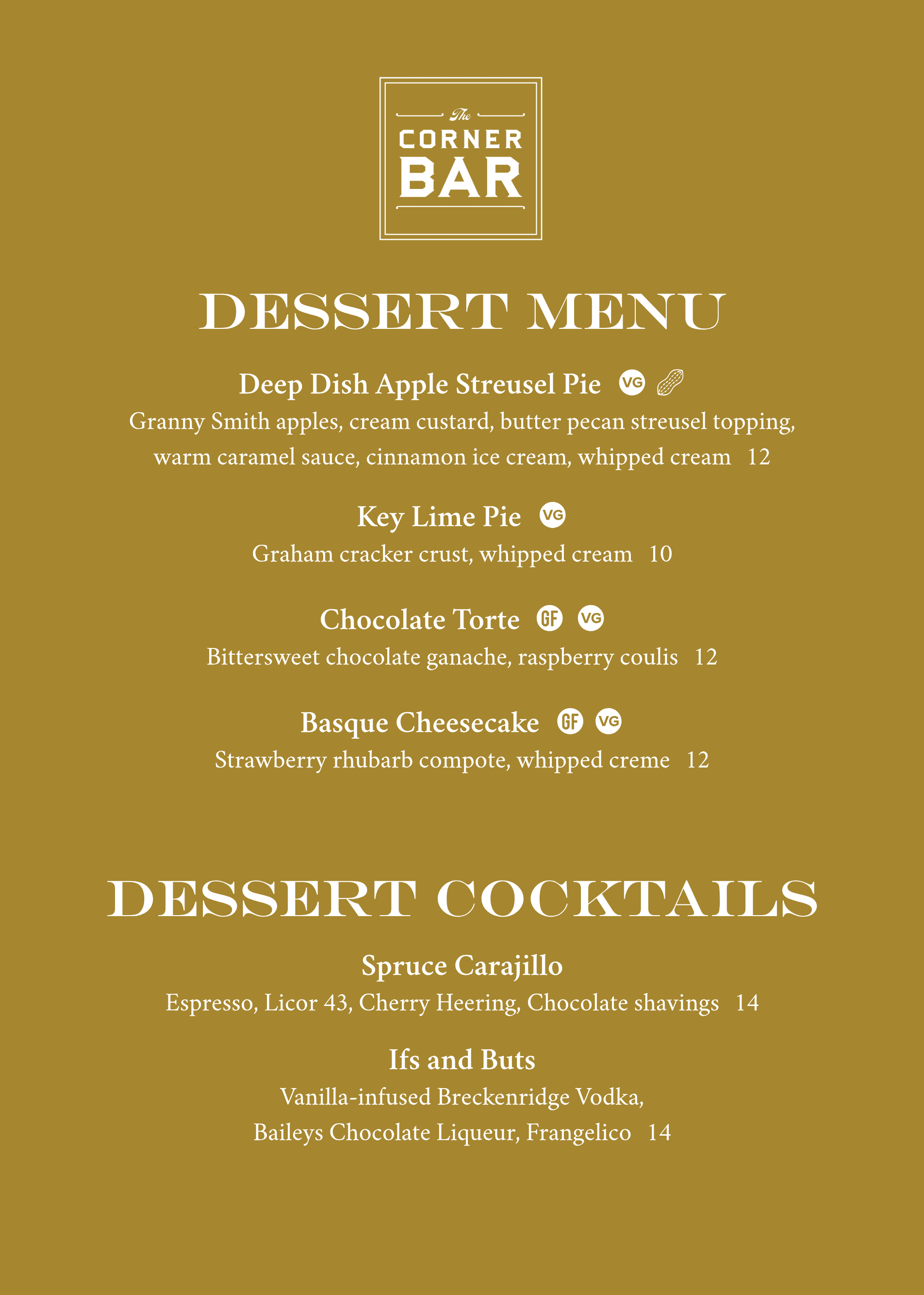 Dessert menu