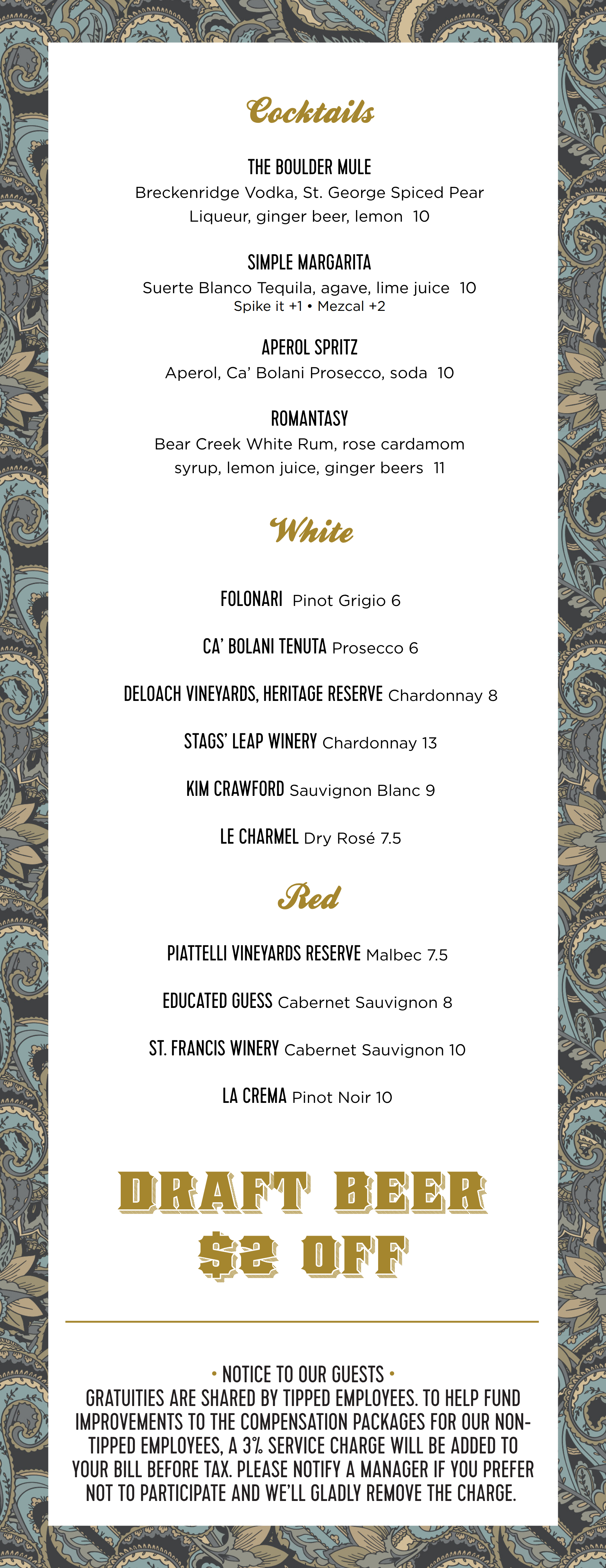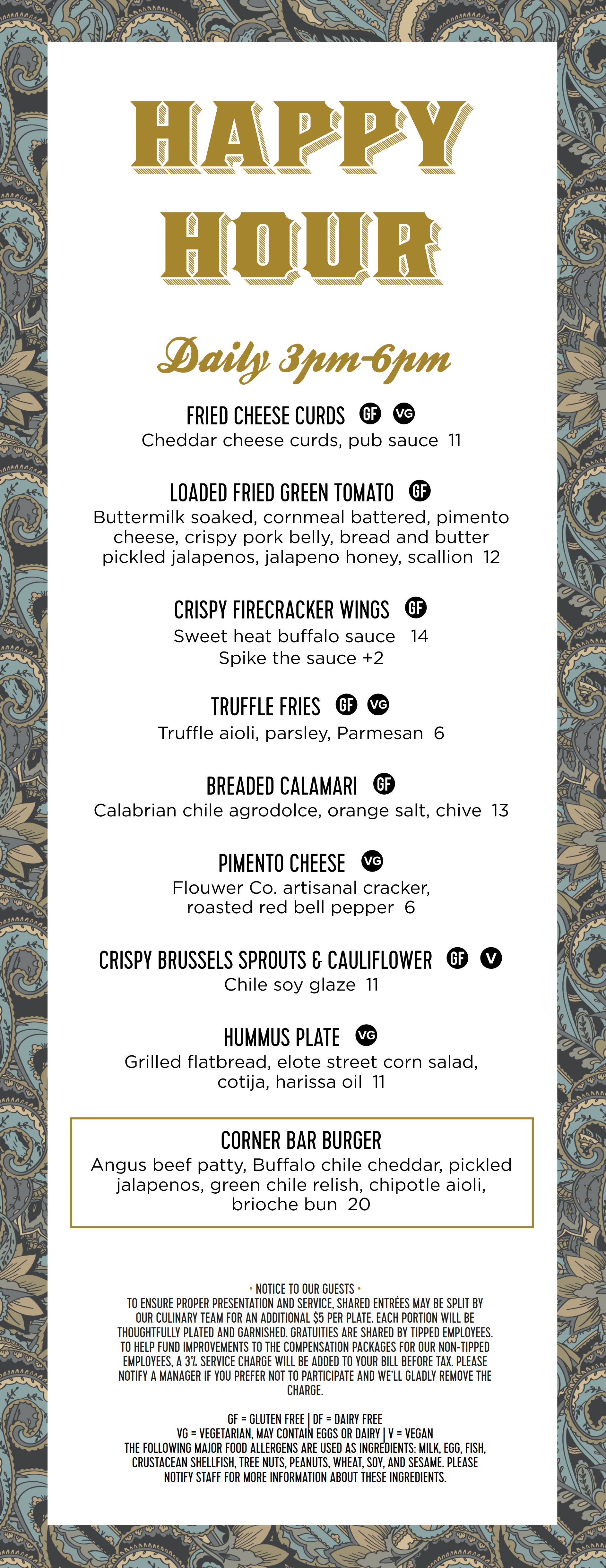 Happy hour Menu
